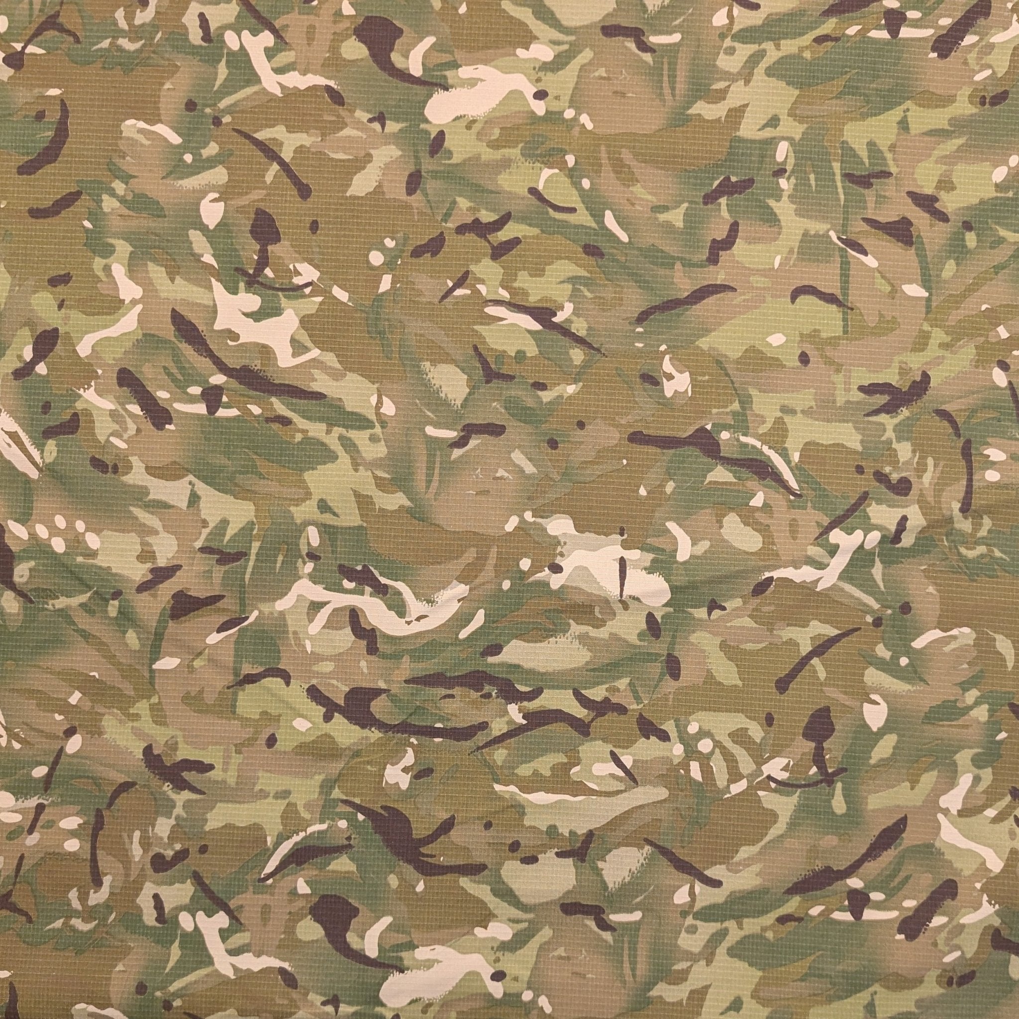 Water repellent ripstop polycotton in an MTP (Multi Terrain Pattern) type camouflage print. Good quality fabric with a soft handle so ideal for clothing. Uncoated so breathable.