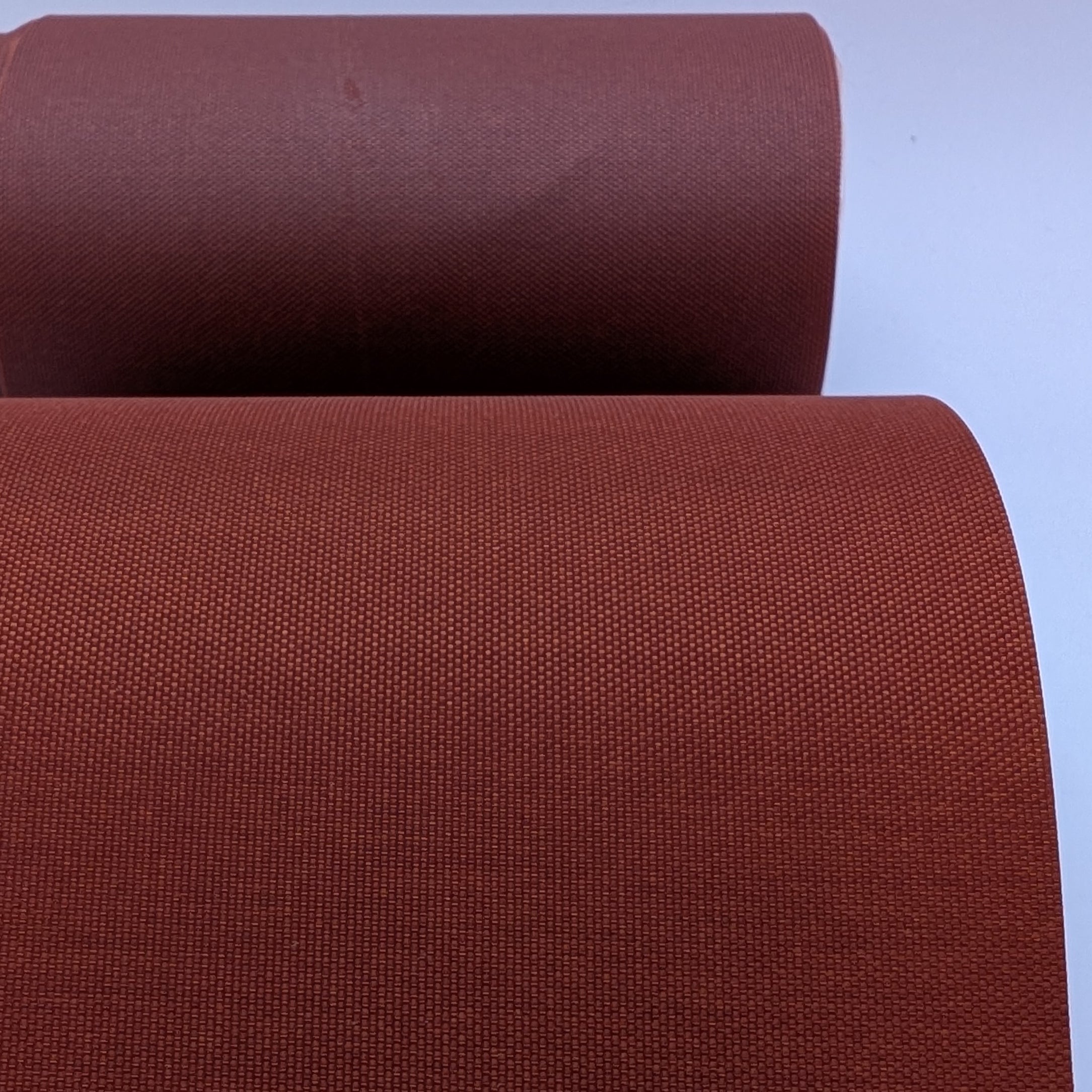 Polyester fabric with waterproof coating. Unusual stiffer handle. Rust shade. Clearance product