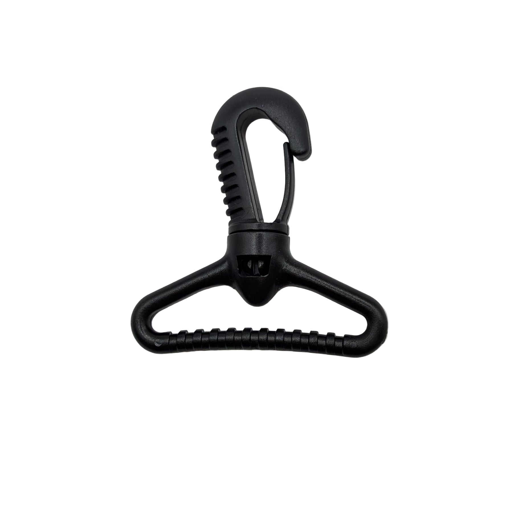 Black, acetyl lightweight snap hook buckle for webbing up to 50mm wide.